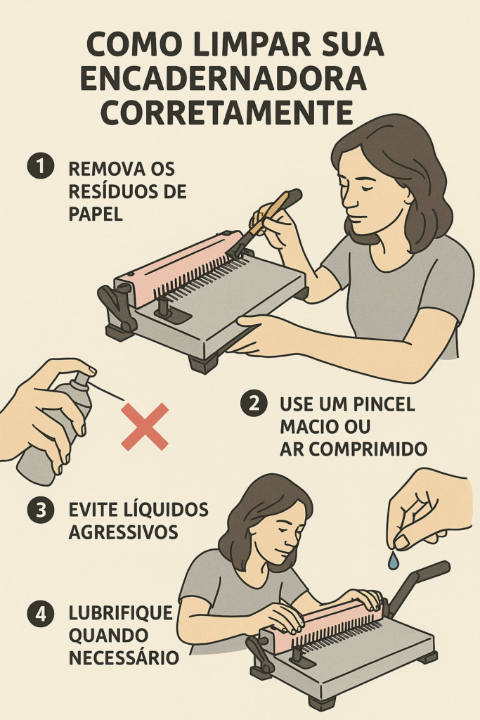 A limpeza da encadernadora não precisa ser complicada. Com alguns passos simples, é possível mantê-la em perfeitas condições de uso: